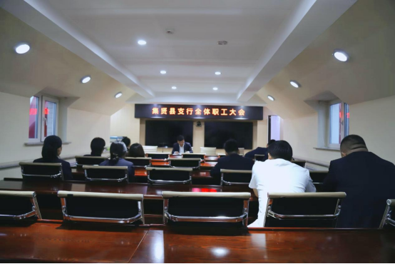 金融文化参讯-黑龙江(高嵩)10月28日下午,农发行集贤县支行积极行动,组织全体职工传达三季度业务经营分析会会议精神。
