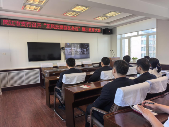 金融文化参讯-黑龙江(李强)为进一步加强党风廉政建设,提高全体员工的廉洁自律意识,增强拒腐防变能力,农发行同江市支行于近日组织召开了“正风反腐就在身边”警示教育大会。会议的主要目的是通过收看警示教育片,引导全体员工从反面典型案例中吸取教训,引以为戒,警钟长鸣,为支行的稳健发展提供坚强的纪律保障。