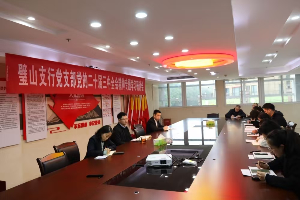 金融文化参讯-重庆(傅晓淞)为深入学习贯彻党的二十届三中全会精神,深化党员对全会精神的理解和认识,增强支部的凝聚力和战斗力,近日,璧山支行党支部开展“深学笃行全会精神 全力推进蓄能行动”主题党日活动,召开党的二十届三中全会精神专题学习研讨会。