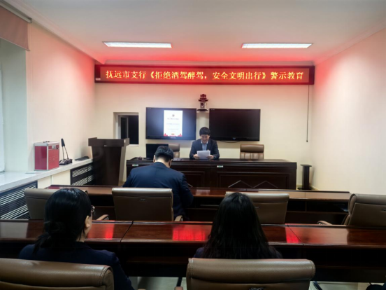 金融文化参讯-黑龙江(张志伟)近日,农发行抚远市支行积极落实总行关于加强交通安全管理的部署,组织开展了一场主题为“拒绝酒驾醉驾,安全文明出行”的警示教育活动。该活动旨在提高员工的安全意识和法律意识,确保每一位员工都能做到文明驾驶、安全出行。