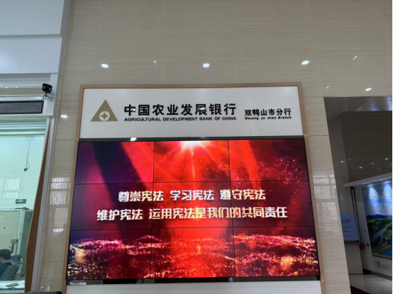网点宣传,营造氛围。农发行双鸭山市分行充分利用营业网点作为宣传主阵地,通过LED显示屏滚动播放宪法宣传标语、在营业厅堂张贴海报、摆放宣传资料等方式,向广大客户普及宪法知识。