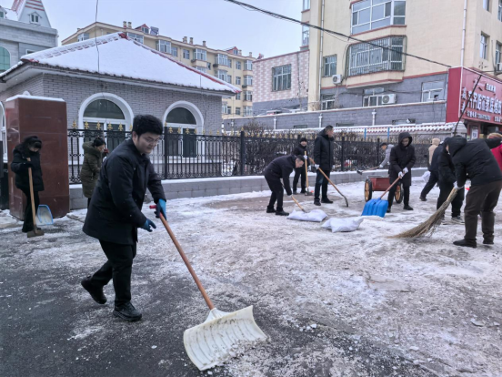 金融文化参讯-黑龙江(孙庭铎)近日,宝清县迎来了大规模降雪,给群众的出行带来了困扰。为切实保障全行职工及附近群众的出行安全,农发行宝清县支行以雪为令,迎雪而行,迅速组织党员干部开展清冰除雪行动,吹响清雪“集结号”。