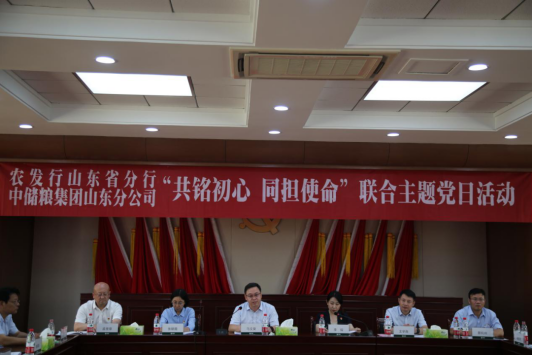 2022年7月27日,农发行山东省分行纪委办公室党支部、党风廉政建设处党支部与中储粮山东分公司第一党支部联合举办“共铭初心 同担使命”主题党日活动。该行党委委员、纪委书记马文荣,中储粮山东分公司党委委员、纪委书记姚剑锋参加活动。