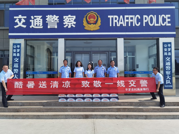 盛夏时节,骄阳似火酷暑难当。8月1日,宁夏平罗农村商业银行向平罗县交通警察大队干警送去矿泉水等慰问品,向一线交警致以崇高敬意。