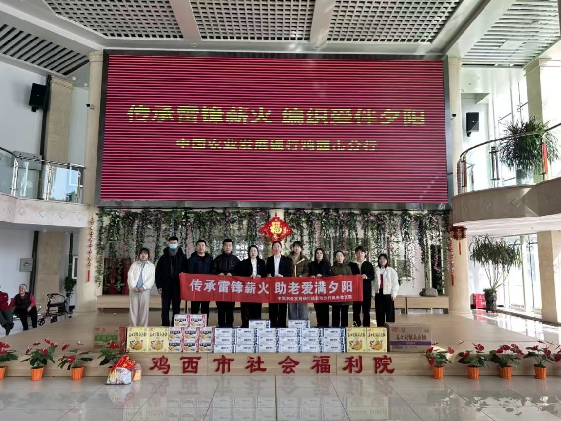 金融文化参讯-黑龙江(徐润菲)为传承和弘扬雷锋精神,凝聚青年力量,传承尊老爱幼、助人为乐的传统美德,进一步发扬雷锋精神,3月4日,中国农业发展银行鸡西市分行青年志愿者们走进鸡西市社会福利院,开展“传承雷锋薪火 助老爱满夕阳”志愿服务活动,用实际行动践行雷锋精神,为老人们送去温暖关怀的同时,积极开展反诈知识宣传。