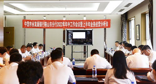 近期,农发行辽宁鞍山市分行召开2022年年中工作会议暨上半年业务经营分析会,贯彻落实省行年中工作会议精神,总结上半年工作,分析当前面临形势,安排部署下半年重点工作,推动全行高质量发展。会议以线下的方式在岫岩召开,市行班子成员、各部室正副高级主管、县级支行班子成员(含“三合一”专员)现场参加会议。