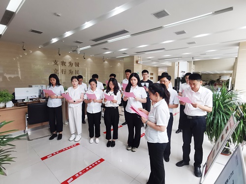 掌好思想理念之舵。为消除新员工上岗前思想上的困惑,帮助新员工建立与农发行共成长的思想纽带。组织新员工观看农发行宣传片和支部书记讲《我与农发共成长》的方式引导新员工感悟支农初心、凝聚奋进力量,强化责任感、使命感。带领新员工全员进行合规宣誓并签订《员工合规安防履职承诺书》,为新员工牢固树立“合规为先、风控为要、全面主动、审慎稳健”的风险合规文化理念,引导新员工依法合规履职,规范职业行为。