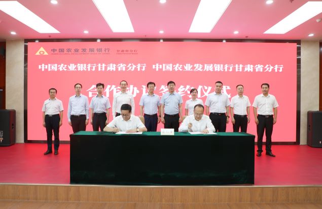 8月12日,农发行甘肃省分行与农行甘肃省分行签署全面合作协议。农发行甘肃省分行党委书记、行长高常青,党委委员、副行长汪玉贵,农行甘肃省分行党委书记、行长姜海洋,党委委员、副行长李红伟,高级专家史砾鑫以及双方相关部门负责同志出席签约仪式并座谈。汪玉贵与史砾鑫分别代表双方签署《全面合作协议》。
