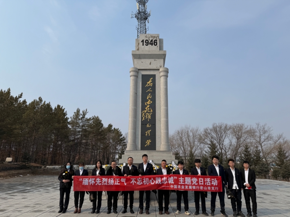 金融文化参讯-黑龙江(李洋)为缅怀革命先烈、传承红色基因,4月2日,农发行密山市支行于组织职工代表赴密山市烈士陵园开展“缅怀先烈扬正气 不忘初心践忠诚”主题党日祭扫活动。通过敬献鲜花、重温入党誓词、参观学习等环节,全体人员接受了一次深刻的爱国主义教育,以实际行动践行文明祭扫新风尚。