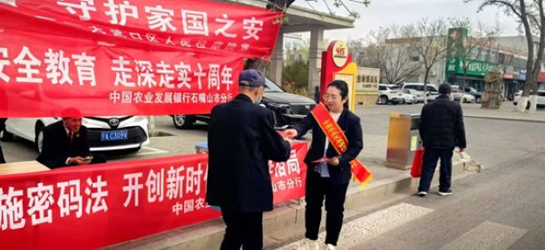 石嘴山市分行:该行结合总分行和当地国家安全局和保密委员会相关要求,认真开展国家安全、保密和密码法的宣传教育活动,开展集中宣传活动。4月15日,以“全民国家安全教育,走深走实十周年”为主题,在大武口区和平广场开展集中宣传活动,通过悬挂横幅、摆放展板、流动宣讲、发放宣传折页等方式,向过往群众普及国家安全、保密法、密码法等知识,引导广大群众坚持总体国家安全观,呼吁群众一旦发现危害国家安全的违法行为,及时向有关部门反映和报告。利用新媒体平台广泛宣传。在权威媒体网站下载公益宣传片,利用办公楼门前LED显示屏和LED播放大屏循环播放国家安全和保密法宣传标语和视频,利用微信工作群向员工推送国家安全教育纪录片《密海风云》和《指尖的守护》。通过全方位、多角度的宣传,深入普及了总体国家安全观,营造了国家安全全员人人有责的浓厚氛围,切实增强全员国家安全意识和技能素养。