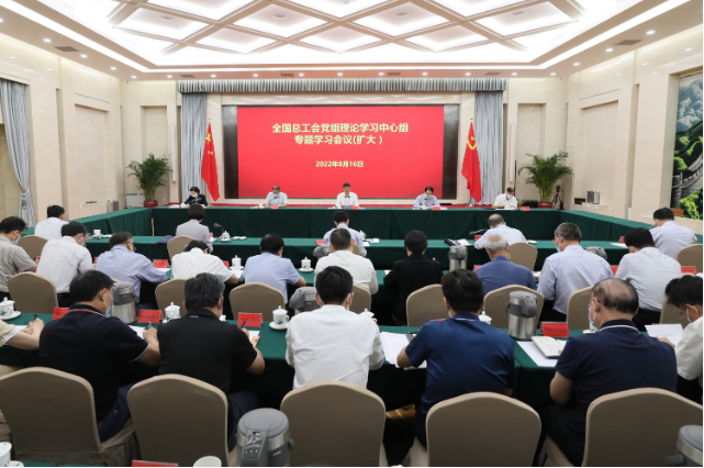 全国总工会党组理论学习中心组8月16日召开专题会议,集中学习研讨《习近平谈治国理政》第四卷。会议指出,全总和各级工会要按照王东明同志要求,深刻把握《习近平谈治国理政》第四卷的精髓要义,持之以恒用习近平新时代中国特色社会主义思想武装头脑,把学习成效转化为推进新时代工运事业和工会工作创新发展的强大动力,以实际行动迎接党的二十大胜利召开。全总党组书记、副主席、书记处第一书记陈刚主持会议并讲话。