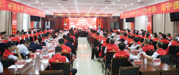 授旗仪式总指挥刘洁华董事长手持四杆印有“祁东农商银行清收攻坚队”字样的鲜红旗帜,依次授予四大战区指挥长。旗帜象征着使命与担当,成为各战区奔赴一线的“精神图腾”,也标志着全行上下协同作战的攻坚格局正式形成。