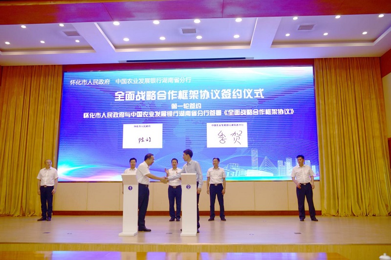 近日,湖南省怀化市人民政府与农发行湖南省分行全面战略合作框架协议签约仪式在怀化市委会议厅举行。农发行湖南省分行党委书记、行长黄进强,怀化市委书记许忠建出席签约仪式并讲话。怀化市委副书记、市长黎春秋主持,市领导陈旌参加。农发行湖南省分行党委委员、副行长季贺,怀化市分行党委书记、行长李红涛等出席。