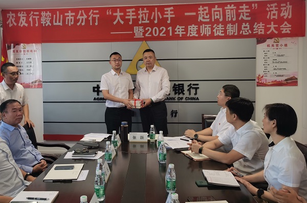 近年来,为加强新员工培训管理,帮助青年同志快速成长,农发行辽宁鞍山市分行制定《“师徒制”实施方案》,通过“大手拉小手”的方式,促进新老员工在职业道德、业务能力、团队协作等方面共同成长进步,取得了良好效果。在教师节来临之际,该行举办“大手拉小手、一起向前走”暨2021年度师徒制总结大会,市分行党委成员、11对“师徒”员工参加。