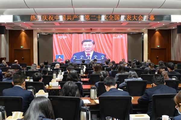 金融文化参讯—云南(省分行办公室)中国共产党第二十次全国代表大会16日上午10时在北京人民大会堂隆重开幕。农发行云南省分行在落实好疫情防控要求的前提下,组织全辖干部职工在各地集中收看了开幕会现场直播,聆听了习近平总书记代表中国共产党第十九届中央委员会所作的工作报告。全行干部员工全神贯注聆听习总书记讲话,深刻感受十年间栉风沐雨取得的重大历史成就,广大干部员工边听边记边思考,仿佛置身于大会现场。