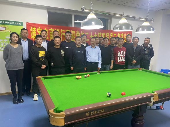 金融文化参讯-吉林(任鹤 )为了丰富职工群众的业余文化生活,发展健康的兴趣爱好,营造和谐的工作氛围,利用现有的场地和设备,10月21日下午,靖宇农商银行工会举办职工台球比赛,比赛在员工活动室举行。