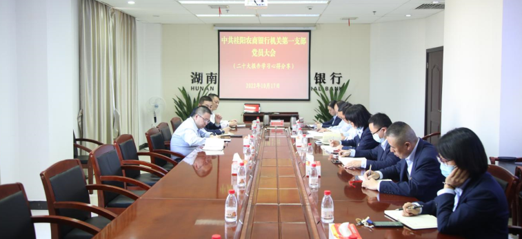 金融文化参讯-湖南(尹璐 卢锋)10月17日,桂阳农商银行机关第一支部召开全体党员大会,深入学习党的二十大报告精神,党委书记、董事长张胜桥和党委委员、副行长唐艳红参加此次会议。