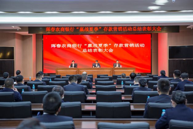 金融文化参讯-吉林(马芳)近日,珲春农商银行召开大会,对2022年6至9月的“赢战夏季”存款营销活动进行总结表彰,并对下步工作进行部署。该行相关领导、中层副职以上管理人员、分理处主任及受表彰单位和人员参加了大会。