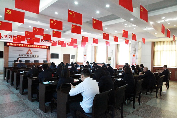 金融文化参讯—辽宁(郭欣茹)为进一步增强广大党员规矩意识,持续加强党风廉政建设,促进全行干部员工进一步坚定理想信念,近日,农发行辽宁本溪市分行党委书记、行长姚增秀围绕“强化纪律意识 廉洁履职尽责 为本溪农发行高质量发展保驾护航”这一主题,为全行干部员工讲授专题廉政党课,机关全体员工参加、辖内3个支行员工通过视频形式在分会场同步参加会议。