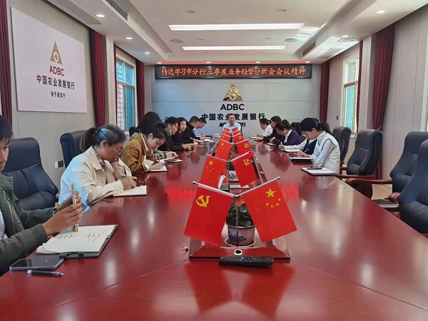 金融文化参讯-江西(涂海燕) 为全面贯彻落实农发行上饶市分行三季度业务分析会会议精神,进一步统一思想、激发合力,2022年10月21日,农发行余干县支行组织全体员工召开会议,分析总结前期工作,明确下一步工作重点。