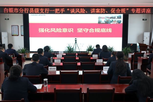 金融文化参讯-甘肃(魏家玲)10月28日,农发行白银市分行通过现场+视频会议方式组织开展了县级支行一把手“谈风险、讲案防、促合规”专题讲座,本次专题讲座由市分行党委书记、行长付平同志主持,市分行机关及辖内支行全体员工参加。