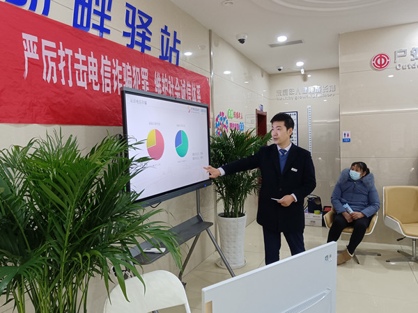 作为农村普惠金融智能服务点,“湖畔驿站”不仅设置了金融服务乡村振兴展示区,还配有党建共建区、金融业务区、消防知识宣传区、未成年人成长角、老年人关爱诊疗区以及户外劳动者爱心服务站等多个功能区域,为客户提供贷款、小额存取款、转账、理财购买、洪泽农特产品线上展销、医保缴纳、缴费充值、快递代收、业务咨询于一体的“驿”站式服务。为了让周边居民熟悉了解驿站功能,于加文自发当起了“宣传员”,定期开展“驿站有约”活动,邀请周边商户、居民走进驿站,了解驿站,有力地提高了“湖畔驿站”知名度。