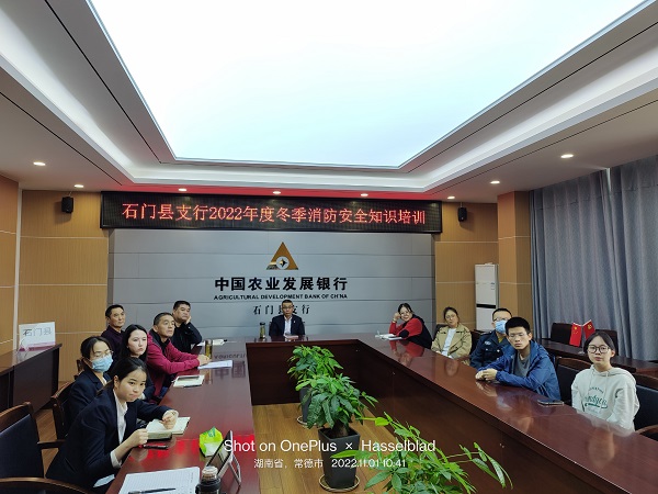 金融文化参讯-湖南(朱凌晓)为切实加强全行消防安全管理,提高广大干部职工消防安全意识和应急自救能力, 确保全行安全生产和高质量发展, 11月1日, 农发行湖南石门县支行邀请消防教官开展冬季消防安全培训及演练。