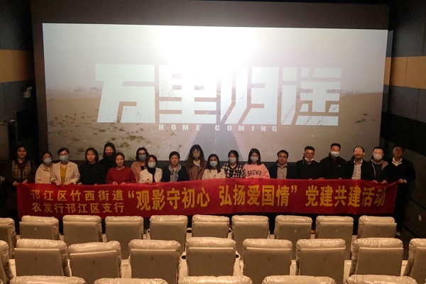 农发行江苏邗江区支行与邗江区竹西街道联合开展“观影守初心 弘扬爱国情”主题党日活动