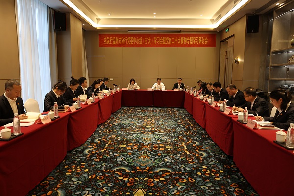 金融文化参讯—浙江(吴梦晓)近日,农发行浙江温州市分行召开党委中心组(扩大)学习会暨党的二十大精神专题学习研讨会,原原本本学习研读党的二十大报告、党章等,认真领悟党的二十大提出的新思想新论断、作出的新部署新要求,并结合工作实际谈体会作交流。市分行党委班子成员、各党支部书记和机关各部室主要负责人近20人参加了集中学习及研讨。