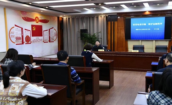 培训中,叶警官结合翔实权威的数据,介绍了我国近年来反电信诈骗所做的工作、取得的成效,分析了当前面临的严峻形势,指出随着金融、通信业的快速发展,借助通讯工具和现代电信诈骗网银技术实施的非接触式的诈骗犯罪正迅速发展蔓延,打击电信网络诈骗是一个复杂的社会治理问题。随后,叶老师结合解读《反电信网络诈骗法》,以生动详实的案例,分别介绍了刷单返利、虚假投资理财、虚假网络贷款、冒充客户诈骗、冒充公检法诈骗等主要电信诈骗类型及犯罪手法,指出通过电信网络进行的诈骗犯罪日益突出且手段多变、骗局逼真,提醒大家时刻保持清醒头脑,主动增强防范意识,注意保护个人信息,下载并经常登录国家反诈中心APP,牢记未知链接不点击、陌生来电不轻信、个人信息不透露和转账汇款多核实的“三不一多”原则,有效应对电信诈骗。同时,要发挥好银行在打击电信网络诈骗中的重要作用,积极履行社会责任,加大防范电信网络诈骗知识宣传,加强对风险账户的精准监测、管控,有效构筑防范新型电信网络诈骗犯罪的坚强壁垒,切实守护老百姓的“钱袋子”。