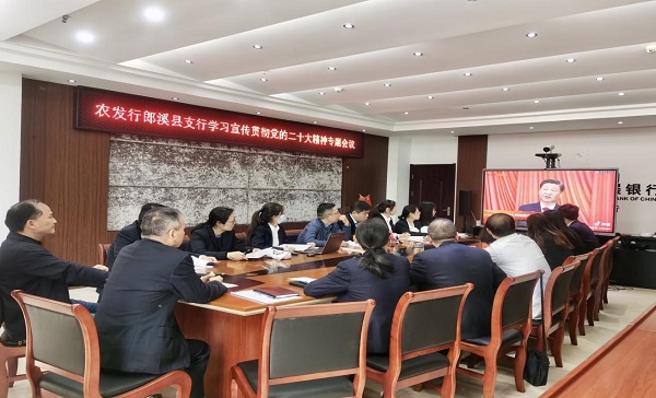 金融文化参讯-安徽(姚艳)为推动学习宣传贯彻党的二十大精神走深走实、入脑入心、见行见效,近日,农发行安徽郎溪县支行组织召开学习宣传贯彻党的二十大精神专题学习会。
