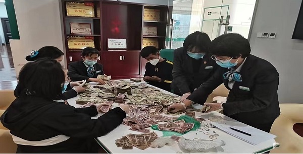 经过将近三个小时的清点整理,成功为客户兑换近三万余元。当两大包零钱换成三沓百元大钞时,客户感动地说:“感谢你们加班加点地帮我解决问题,农行真的是一心为老百姓考虑,不愧是咱老百姓自己的银行。”