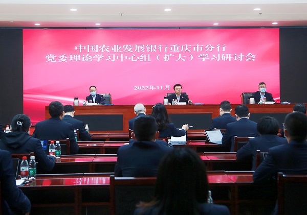 金融文化参讯-重庆(王俊逸)11月17日,农发行重庆市分行组织召开党委理论学习中心组(扩大)学习研讨会,开展集中学习研讨,深入学习贯彻党的二十大精神。市分行党委书记作重点发言,相关处室负责人作交流发言,市分行党委成员、驻守机关各处室负责人参加会议。