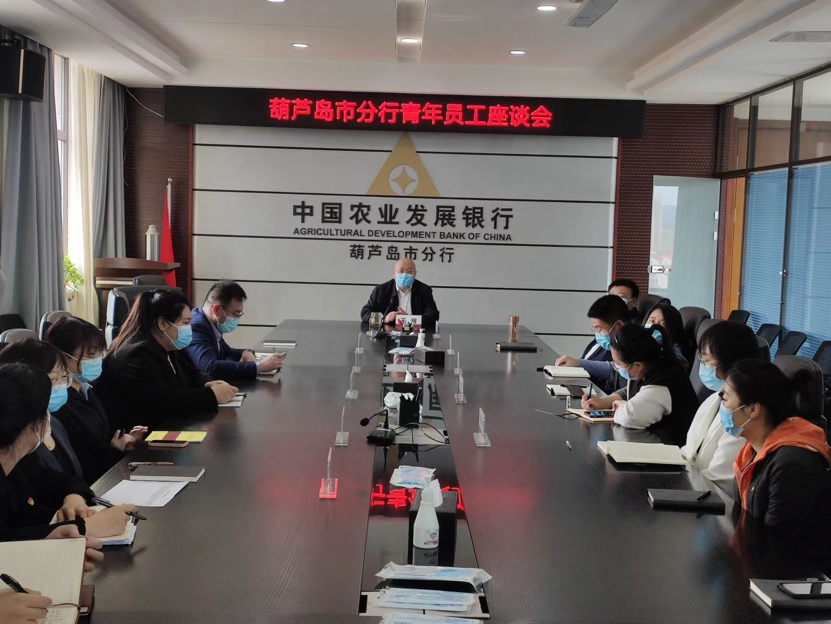 4月27日,在“五四”青年节即将到来之际,农发行辽宁葫芦岛市分行召开青年员工座谈会,市分行行长王绪、副行长鲁沛、人力资源部高级主管李秀婷出席会议。
