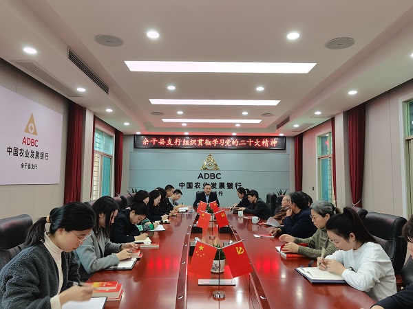 金融文化参讯—江西(涂海燕)为在全行上下掀起学习贯彻党的二十大精神热潮,近日,农发行余干县支行组织全体干部职工,并邀请退休老党员,集体学习党的二十大精神。会上,大家认真研读党的二十大报告和《中国共产党章程》,进一步持续深入学习领悟党的二十大精神。