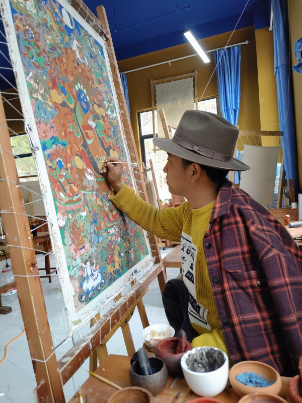 去年8月,为进一步巩固阿坝州脱贫攻坚成果,接续推动乡村全面振兴,阿坝农信联社制定《支持阿坝州乡村振兴工作方案》,全力扶持个体工商户纾难解困,开展个体工商户信用融资破难行动,创新推出信用贷款最高额度50万元、期限3年、利率优惠的个体工商户“兴商贷”产品。9月,金川信用社在开展“走千访万”营销活动中了解到州级非遗传承人索郎塔尔多急需资金新购一批唐卡矿石颜料,立即组织营销团队上门服务,当天就向索郎塔尔多发放了首笔“兴商贷”信用贷款20万元。有了流动资金,索郎塔尔多扩容学徒15名,作品外销至北京、上海等地,基地年均创收100余万元。同时,为助力厚植工匠文化,让“指尖经济”做大做强,金川信用社主动对接唐卡学徒,向困难学徒家庭发放“随用随贷”的小额农贷,解决唐卡学徒的后顾之忧。作为阿坝州第十三届人大代表的索郎塔尔多也一起发力,对学生学费全免,对本地藏族孩子提供免费住宿、提供三餐,倾情倾力与金川信用社一道培育更多唐卡工匠。