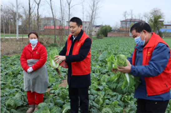 11月30日,郸城联社驻南丰镇五里行政村第一书记刘明东和驻村队员在进村入户排查中发现,种植娃娃菜的菜农正在为自家地里种植的万斤蔬菜产销而发愁。据了解,平时这些菜主要销往县各大农贸市场、饭店,现在受疫情影响囤积滞销。由于蔬菜销售是农户家的主要收入来源,看着几亩郁郁葱葱的蔬菜没有销路,农户一筹莫展。为积极响应助农惠农政策,解决蔬菜滞销难题,郸城联社党委了解情况后,立即委派办公室人员前往蔬菜种植地实地查看滞销情况,主动帮助种植户联系外销渠道的同时,内部采购娃娃菜帮助菜农解决燃眉之急。