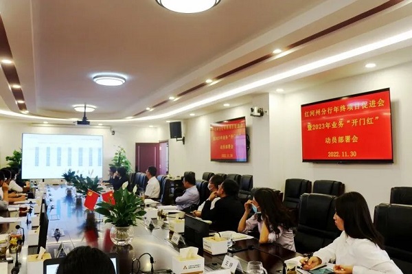 金融文化参讯—云南(王聪 曾海龙)近日,农发行红河州分行严格贯彻落实上级行党委工作部署,对全辖2023年“开门红”工作进行再动员、再部署,及时研究解决辖内机构在项目推动和贷款投放过程中遇到的问题,切实做到谋篇布局、抢占先机。