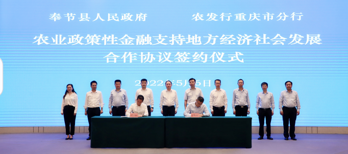 近日,农发行重庆市分行与奉节县人民政府举行农业政策性金融支持地方经济社会发展合作协议签约仪式。市分行党委书记、行长孟范君,奉节县委副书记、县长巩义胜分别致辞,县委书记张果出席。市分行党委委员、副行长曹华政,县委常委、常务副县长胡云清代表双方签署了合作协议。