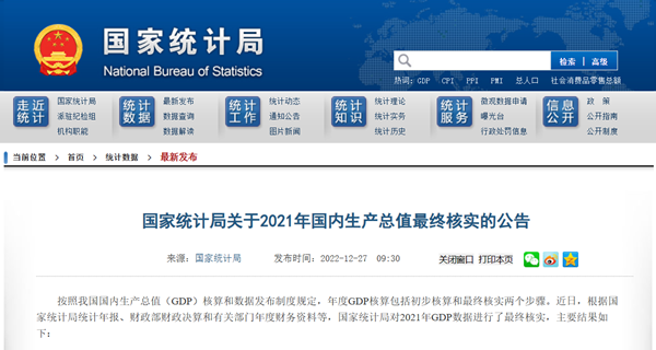 12月27日,国家统计局发布《关于2021年国内生产总值最终核实的公告》(以下简称《公告》)。