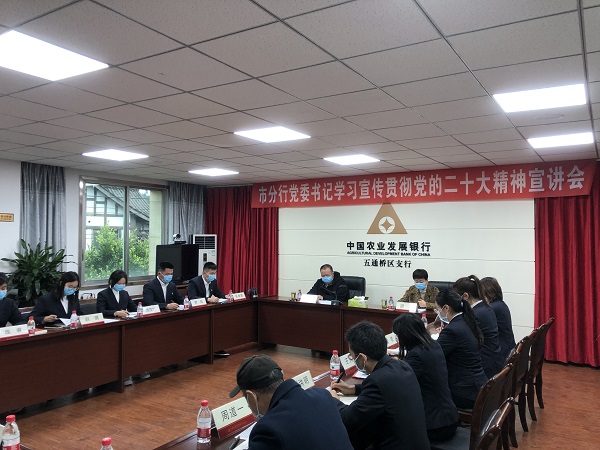 金融文化参讯-四川(刘佳圆 潘依)为深入学习宣传贯彻党的二十大精神,近日,农发行乐山市分行党委书记、行长杜松到农发行五通桥区支行开展二十大精神专题宣讲,该支行全体员工参加。