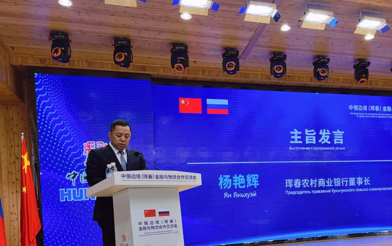 金融文化参讯-吉林(田礼富)1月12日上午,吉林珲春农商银行做为地方性法人银行,参加了由吉林省珲春市委市政府与中国产业海外发展协会共同举办的中俄边境(珲春)金融与物流合作交流会。会上,该行董事长杨艳辉作了题为“推动跨境金融服务,惠及中俄边贸发展”的主旨发言。