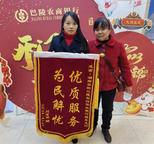 金融文化参讯-湖南(陈克)1月14日上午,刘金爱女士带着“优质服务,为民解忧”锦旗来到巴陵农商银行城东支行,激动地握着委派会计李玲的手,一遍遍说道:“太感谢你们银行工作人员了,这12万块钱都是拿来治病的,如果没有了我真不知道该怎么办。”