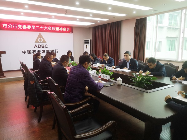 开展一次宣讲交流。为深入学习贯彻党的二十大精神,农发行乐山市分行领导班子下基层开展了一次深入浅出的交流。会上,全行员工围绕党的二十大胜利召开及党的二十大报告开展了热烈讨论,纷纷表示要持续不断深入学习党的二十大精神,做到源流结合、融会贯通,以理论上的清醒保持政治上的坚定,要理论联系实际抓好落实,结合全年目标任务,真正使二十大精神贯穿到业务工作的各个环节,推进各项经营活动取得实效。