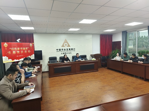 “我现在准备踏着先烈们的血迹去就义。我已经尽了我的一切努力,贡献给了我的阶级,贡献给了我的党。把全部的精神,全部爱我的精神,关注在我们的事业上,不要一刻懈怠、消极。”1930年5月,共产党人刘愿庵在重庆被捕就义,时年35岁。遇难前夕,他提笔给妻子写下这封遗书。农发行五通桥区支行支部委员详细介绍刘愿庵的生平事迹及他写下家书时的背景故事,饱含深情地进行朗诵,刘愿庵同志不惧酷刑、坚贞不屈的故事令在场人员动容,全行干部职工认真聆听,心潮澎湃,久久回味。随后,该支行老党员为大家讲述发生在他当兵时期的家书故事,用真实的家书内容诵读着英勇无畏的战士们对家人的关爱、对国家民族和命运的牵挂,让大家真切领悟到家书上的家国情怀。