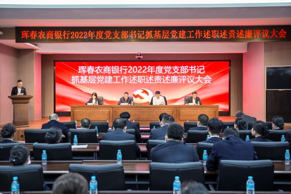 金融文化参讯-吉林(苗艳)2月28日,珲春农商银行组织召开2022年度党支部书记抓基层党建工作述职述责述廉评议大会。该行班子成员和总部党员、群众代表共50余人参加会议,吉林省农信联社督导组徐春辉主任到会指导。会议由该行党委书记杨艳辉主持召开。