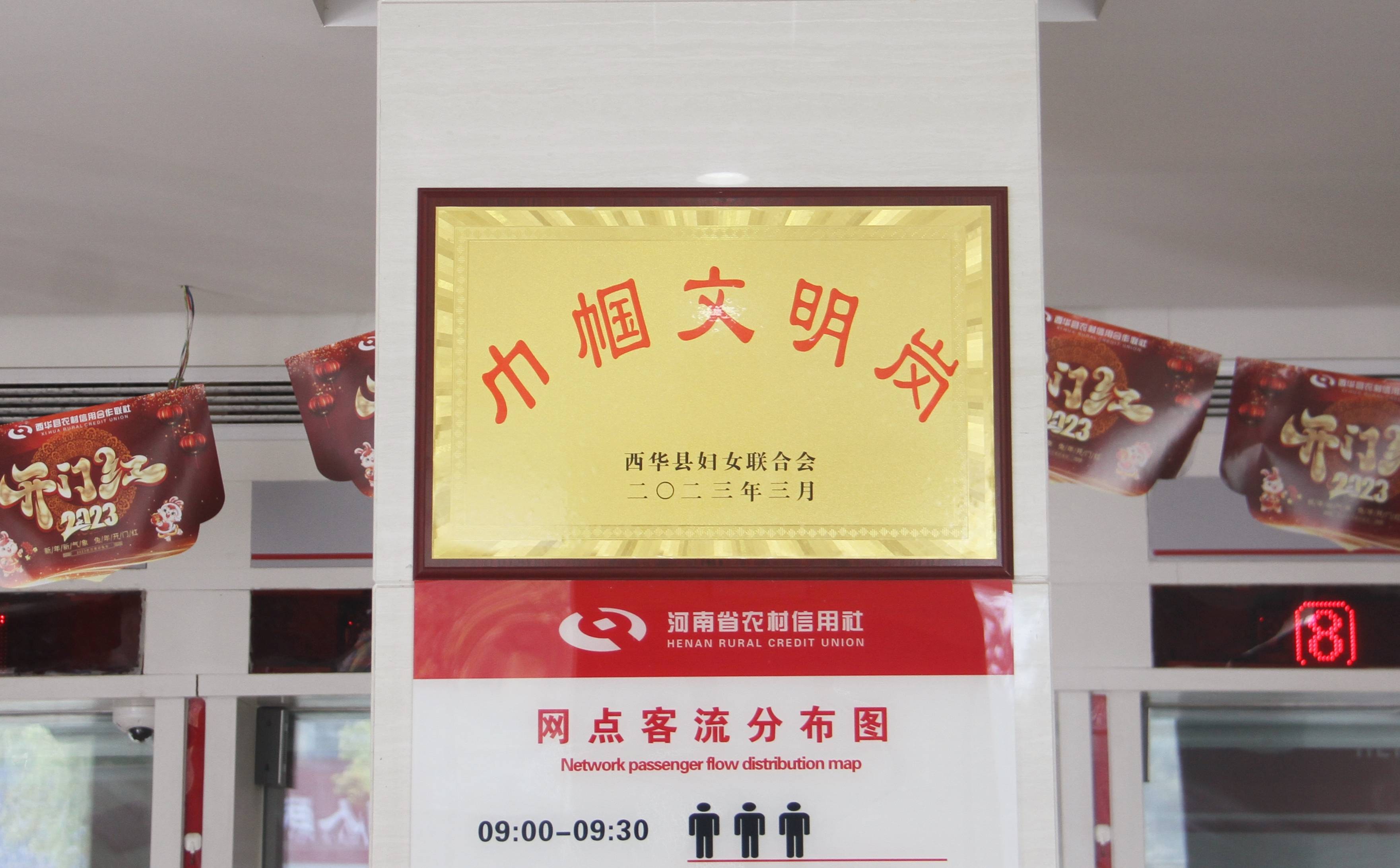 金融文化参讯-河南(朱贺)近日,在2023年“三八”国际妇女节到来之际,西华农信联社营业部被县妇联授予“巾帼文明岗”荣誉称号。