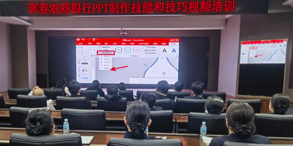 金融文化参讯-吉林(马芳)为了提升员工的工作技能,全面掌握PPT制作方法及操作水平,提升日常工作汇报、培训的工作效率,珲春农商银行于3月20日至3月21日组织员工集中开展PPT制作技能和技巧视频培训。此次培训各部门、各支行积极响应,共计40余人在总行集中培训,长春朝阳支行同步参与培训10余人。
