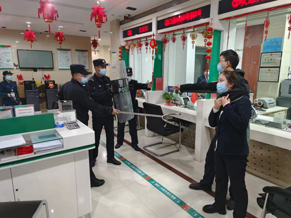 此次演练从银行安保工作实际出发,设置了“歹徒挟持客户抢劫银行现金”紧急情况下的情景模拟。该行工作人员、保安人员与派出所民警密切配合,冷静处置,熟练使用“110”报警装置、视频监控中心、防尾随联动互锁门等技能安全防范设施,在保障人员人身、资金安全的同时,协助接警民警对“突发抢劫事件”进行了成功有效的处置。通过开展3.15突发事件应急处置演练,使全体员工真实体验突发事件并进行应对处置,提高全员应急处置能力,最大程度减轻各类突发事件危害和损失,确保了人身、财产安全。
