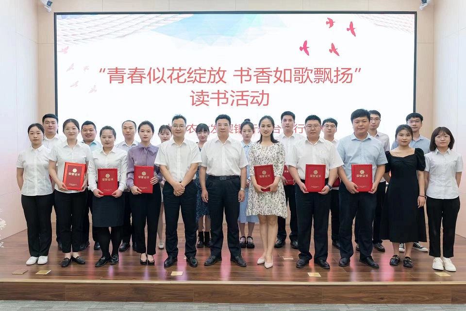读书学习是广大党员干部和青年同志修身养志、增长才干的必由之路。邢台市分行将读书学习作为人才培养的有力抓手,并将其列入青年工作方案一项重要工作内容。开展县支行行长和机关中层干部每月“共读一本书”活动,扎实理论知识,提升专业素养,涵养人文情怀。按月开展多种形式的读书活动,通过经典诵读、诵读评比、荐书赠书、分享心得等多种方式,引导青年员工享受阅读之趣,寻找阅读之美,扎实推进人才培育,夯实企业文化底蕴,促进青年快速成长。